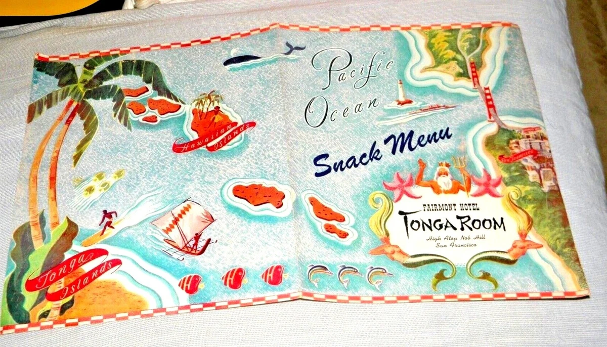 LOVELY MENU CARTOON MAP HAWAII SAN FRANCISCO FAIRMONT HOTEL TONGA