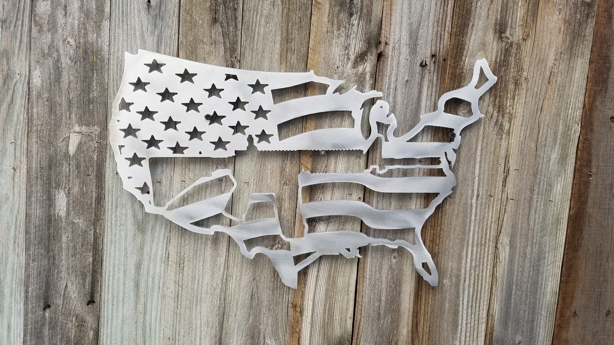 USA Map/Flag With AR15 Cut Out Personalized Custom Metal Art