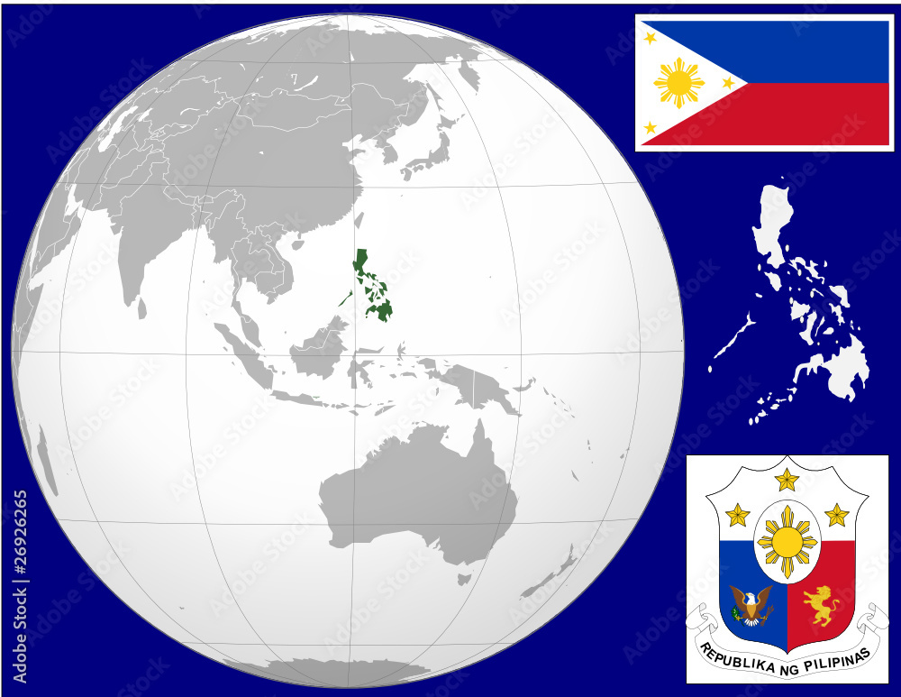 Philippines globe map locator world flag coat Stock Vector | Adobe